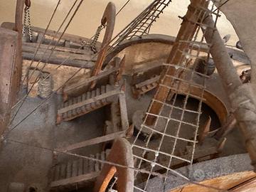 Veliero in legno fatto a mano. Lunghezza 120 cm circa; Altezza 84 cm circa; Larghezza 34 cm circa. Da spolverare. Solo ritiro visto le dimensioni e fragilità.