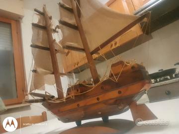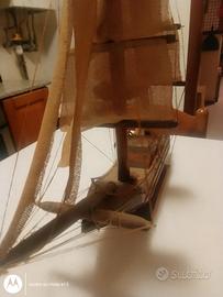 Veliero in legno con vele in iuta e catenine in ferro