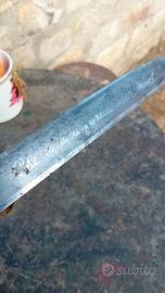 eccezionale coltello Corso, Vendetta,di dimensioni eccezionale,lama cm 26!!! tutto aperto cm 56, incisione da un lato:che la mia ferita sia mortale,dall altro vendetta corsa,anni 20, condizioni eccezionali, oggetto molto raro in queste dimensioni, astenersi perditempo e offerte ridicole
