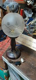 ( VENDUTA ) : Lampada da tavolo risalente a gli anni 50 - totalmente in legno intarsiato e calotta a globo in vetro satinato/lavorato - completamente originale compreso l'impianto elettrico - funzionante - mantiene tutt'oggi sotto la base il " made in italy " ed il prezzo d'origine - misure h35×la20 -