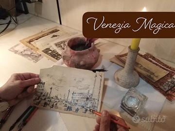 Copia antica di veduta veneziana attribuita a modi di Francesco Guardi: Cosa è: Disegno a mano di raffinata esecuzione, cm 14 x 21, realizzato su carta antica di oltre cinquant’anni. L’opera raffigura la Piazzetta di San Marco verso San Giorgio Maggiore, uno dei temi più suggestivi della Venezia settecentesca, reso con tratto essenziale e vibrante tramite pennino e china. Di chi è: La critica la riferisce a modi di Francesco Guardi, maestro tra i più poetici e sensibili del vedutismo veneto del Settecento, capace di trasformare la veduta urbana in immagine di grande fascino. Francesco Guardi occupa un ruolo centrale nel panorama dei vedutisti veneti del Settecento: accanto alla precisione descrittiva di Canaletto, egli interpreta Venezia con maggiore libertà, sensibilità luministica e introspezione, anticipando per molti aspetti una visione più moderna e emotiva del paesaggio urbano. L’originale di riferimento, datato 1790, è conservato presso il Museo Correr di Venezia. Lo stato: La carta presenta usure coerenti con l’età, con piccole mancanze agli angoli, senza compromettere la lettura e il fascino complessivo del pezzo. Per chi è: Un oggetto di sicuro interesse per collezionisti, appassionati di grafica antica e amanti della Venezia del Settecento.