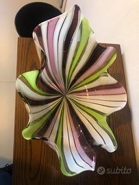 Venini / Fazzoletto a Canne / coppa / lattimo, verde erba, ciclamini, viola, rosa / vetro soffiato lavorato a mano / EDIZIONE LIMITATA
