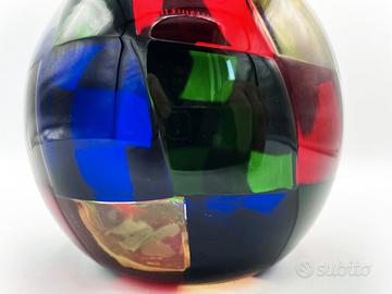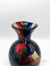 Vaso a botticella della serie Pezzati Parigi realizzata dalla Venini su disegno di Fulvio Bianconi. La serie Pezzati Parigi è stata prodotta fino al 2013 e ad oggi è fuori produzione. Fa parte di una serie di 4 vasi ed il vaso in questione è stato realizzato nel 2003. Non presenta difetti e viene fornita senza scatola originale.