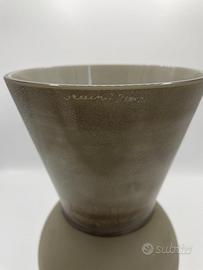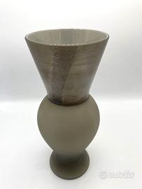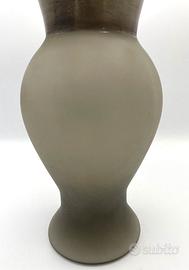 Vaso chiamato il Principe realizzato in vetro di Murano color talpa. Articolo che fa parte della collezione Re Regina Principe di Venini. Opera creata dai migliori maestri vetrai e inventata dal designer Rodolfo Dordoni. La collezione presenta vasi in vetro soffiato lavorato a mano, la cui parte superiore è impreziosita dalla sovrapposizione di foglie metalliche, mentre la parte inferiore è satinata. Il vaso in oggetto è stato realizzato nel 2002.