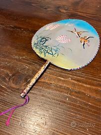 Ventaglio cinese Originale Anni 50. Perfettamente conservato, in condizioni impeccabili. In pura seta e dipinto a mano con dovizia di particolari. Dimensioni: diametro 21 cm e lunghezza con manico 31,5 cm. Splendido da possedere, da appendere o da regalare. Un pezzo unico. Introvabile. Bellissimo.