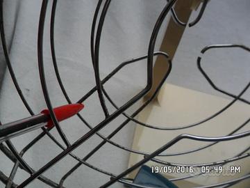 Le sue misure sono: diametro elica cm 25 - diametro griglia cm 32 - base cm 16 x 23 - altezza cm 35 - filo cm 220 - bracci cm 22