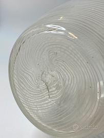 Bellissimo versatoio in vetro soffiato vintage di produzione muranese in stile Venini, con la tipica lavorazione a filigrana bianca a spirale. Integro e perfetto in ogni sua parte, privo di filature o scheggiature.
