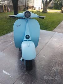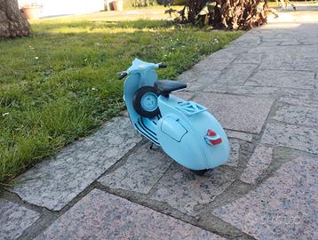 Modellino di vespa in legno fatta a mano anni 50 con fanale anteriore e posteriore che si accendono.misure: lunghezza cm 43 e larghezza cm 13.con base in legno.