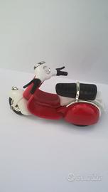 Modellino Vespa vintage in metallo colore rosso e bianco con retromarcia modello41708 lunghezza 12 cm