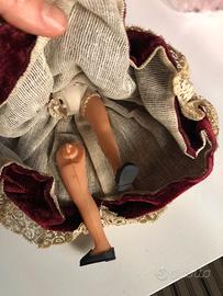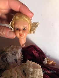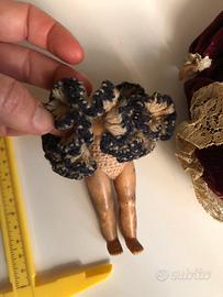 La bambola piccola ha solo le gambe, il vestito sembra fatto a mano. La bambola piu’ grande si puo’ ricomporre, ha le braccia e le gambe, gli occhi si muovono. Avranno piu’ di 50 anni. Tutto al prezzo indicato