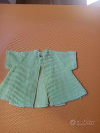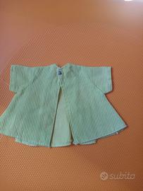 Vestito per bambola, anni '60, largo 13 cm sotto incavo manica, verde chiaro con due fiocchi bianchi, cotone.