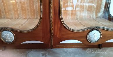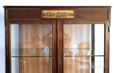 Vetrinetta a due ante con applicazioni in ottone. Dim. cm 185x110x39