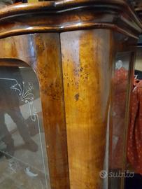 Graziosa vetrina in radica anni 50 con ante smerigliate e ripiani in vetro. Misure H. 140 L. 130 P. 41 Buone condizioni generali