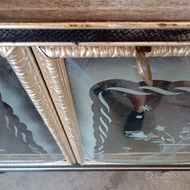 Bellissima Vetrinetta Bar degli anni '50 , € 165,00 particolari i vetri Bombati e serigrafati ( plastica bombati ) interno con fono in tantissimi rettangoli di vetro a specchio ( classico degli anni '50 , non presenta difetti ritirata in Inghilterra circa da 30 anni e tenuta in ufficio del negozio . Posso anche spedire in tutta Italia su bancale e ben protetta + € 35,00 . Misure cm 40x78xh91 . Visibile a Santa Margherita D'Adige ( PD ) Via Alessandro Volta 451 Info Cristian 3270173200 .