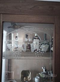 Vetrinetta in castagno di epoca primo'900 (anni 30/40) con tre mensole interne regolabili, cassetto inferiore, vetri sabbiati con motivi di frutta, dimensioni contenute. Mobile rustico da cucina /tinello, pratico ed essenziale. Da restauro. Mis. 1.06xh1.98x 0.44 Per info 340 6203846 o WhatsApp.