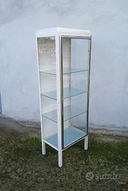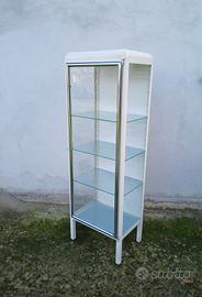 Vetrinetta medica anni 50/60 , in metallo , ripiani regolabili , larghezza 50 , profondità 38 , altezza 152 .