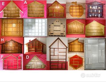 "Vendo a collezionisti, come da foto, vetrinette artigianali in legno, con antine vetrate (misure LxPxH, in cm):