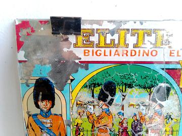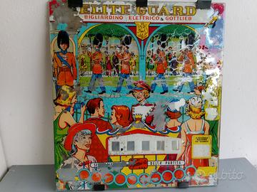 Vetro flipper Gottlieb biliardino elettrico Elite Guard. Il disegno presenta diverse imperfezioni, al vetro originale e' stato attaccato uno specchio. misure 50x56 .