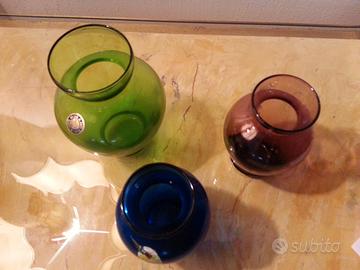 Vetro Murano, tre vasetti colorati