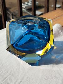 Vetro sommerso bicolore , sfaccettato, di Flavio Poli, anni 60, colore blu con sfumature tendenti al giallo con foro per contenere accendino made Japan Dim. 8 x 8 cm, altezza 7 cm . Perfetto no sbeccature, praticamente nuovo . L'accendino fa le scintille, ma non è stato caricato con gas .