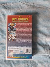 Vendo Vhs Ufo robot contro gli invasori spaziali, custodia rovinata nella parte sopra, solo la plastica non l'immagine, vhs della cinehollywood con tre film di montaggio con Goldrake e Mazinga, per altre info o foto contattatemi