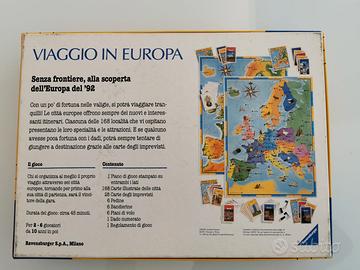 Gioco in scatola degli anni 80 Viaggio in Europa di Ravensburger. Nuovo, non ci ho mai giocato nemmeno una volta. Tutto perfetto e tutto completo. Solo la scatola esterna, come da foto appena fatte, si vede che è un po' vecchia. Da collezione e futura rivalutazione.
