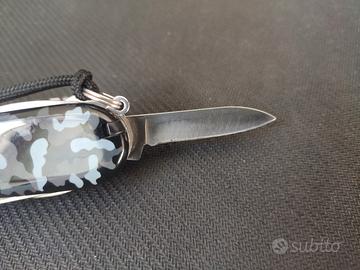 lama secondaria abbastanza usurata, i restanti strumenti sono ancora come nuovi con filo di fabbrica. Accessori: laccetto, mini-cacciavite, spillo, pinzetta con bordo nero originali