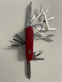 Lama, grande / Lama, piccola / Cavatappi / Mini cacciavite 1,5 mm / Cacciavite 2,5 mm / Alesatore, perforatore e punteruolo da cucito / Forbici / Seghetto per legno / Cacciavite Phillips 1/2 / Gancio multiuso / Lente d’ingrandimento / Scalpello 4 mm / Anello portachiavi / Spillo / Pinzette / Stuzzicadenti / Penna a sfera pressurizzata / Squama pesci / Apribottiglie / Lima per unghie / Pinza multifunzione / Apriscatole / Cacciavite 3 mm / Cacciavite 6 mm / Sega per metallo / Lima per metallo / Pulisci unghie / Crimpa fili / Spelafili / Tronchesi / Slamatore / Righello (cm) / Righello (pollici)