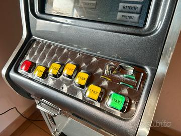 Perfettamente funzionante per serate con amici o come arredamento Multigame con 7 giochi Completa di chiavi in doppia copia e manuale uso manutenzione Funzionamento è come quelle odierne Sarà possibile in futuro sostituire la scheda di gioco così da poter cambiare i giochi , compatibile con tutti i giochi in circolazione Si può caricare in auto abbassando i sedili, non serve furgone. Misure: altezza 175 cm, larghezza 62 cm, profondità 38 cm Ottima in taverna da affiancare a flipper o al biliardo , al calciobalilla al jukebox, tavolo slot poker , al ping pong , alla carambola o per completare ambienti vintage machine con insegne smaltate jukebox e cabinati anni 80 jamma video arcade neo geo