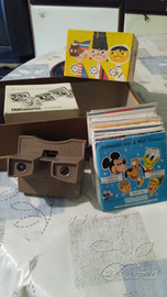 View-Master 3-D-Viewer con scatola originale+ 2 istruzioni+18 cartoncini con dentro 3 dischetti =54 tra cui 20000 leghe sotto i mari-vari cartoni animati-citta' italiane-svizzera-capri-farfalle americane ecc...si tratta di un piccolo strumento per vedere foto in 3D originale degli anni 60-70 in buone condizioni.altre informazioni se interessati disponibili previo contatto .ps: i titoli sono visibili da foto inserite nell'annuncio.ciao