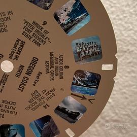Visore View-Master Sawyers originale americano anni ‘60 completo di 3 confezioni di dischi (3 dischi per confezione, 21 viste) per visione stereoscopica. Ottimamente conservato