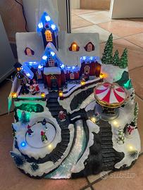 Villaggio con cascata con luci musica e movimento con trasformatore Non funziona più a batterie ma funziona col trasformatore Dimensioni: 40x30x30