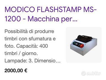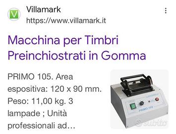 Vendo macchina Villamark modello:PRIMO 104 con doppia lampada UVA…. In perfetto stato l….ma la cedo a poco perche’,oltre ad aver verificato il funzionamento elettronico che va ,non posso fare prove reali con creazione timbri anche perche’ non la so proprio usare….. il prezzo bassissimo e’ per questo motivo visto che funzionanti costano quanto vedete in foto…. Se fossi certo che funzionasse non la darei certo a 100 euro…. (Al 95% sono sicuro funzioni…)Se ritiri di persona.Chi capisce capisce… ,per chi forse vorrebbe una ferrari nuova e funzionante e garantita…a prezzo di panda….Nuove costano anche circa 2000 euro di simili caratteristiche tecniche.