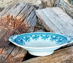 Villeroy & Boch . Mettlach bowl "Ingo" blue ears of wheat .// Piccola ciotola Jugendstil . Villeroy Boch, Mettlach . Linea "Ingo" con parti in rilievo Periodo 1890-1920 Colore ben conservato, condizioni vintage buone tranne alcune sbeccature visibili sotto il bordo. Vedi foto