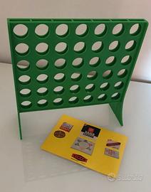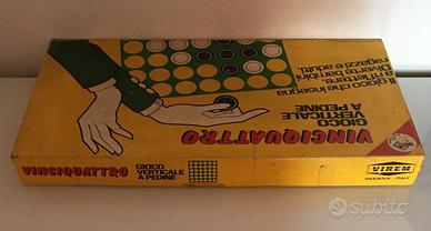 Gioco usato, antenato del più celebre Forza 4, in buone condizioni, completo di tutto, come testimoniano le fotografie che sono parte integrante della descrizione. Segnalo che i 2 semi-quadranti verdi si uniscono unicamente grazie agli appositi incastri centrali, in quanto gli incastri angolari sono rotti. Ciononostante i due semi-quadranti si uniscono perfettamente, consentendo lo svolgimento del gioco in tutte le sue parti. ll coperchio e la scatola, assolutamente solidi, mostrano i segni del tempo, come tracce di polvere e aloni. Piccole tracce di nastro adesivo sui due lati lunghi del coperchio e sul fondo della scatola. Istruzioni in italiano.