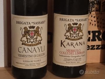 Coppia n.2 bottiglie vino "Brigata Sassari" anno 2008 CANAYLI Vermentino di Gallura KARANTA Nebbiolo Colli del L'imbarazzo Cantina Gallura Tempio Pausania da collezione