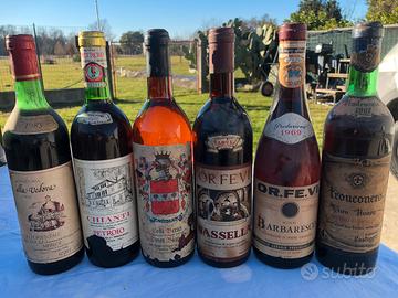 Vendo tante bottiglie di vino anni 1950 in poi .