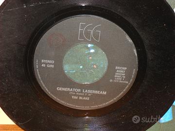 VINILE 45 GIRI – TIM BLAKE. VINILE ORIGINALE ANNO 1978 A MARCA BARCLAY. INTEGRO E PERFETTO IN TUTTE LE SUE PARTI. NON PRESENTA DIFETTI DI NESSUN TIPO. LATO 1 : GENERATOR LASERBEAM – LATO 2 : THE WOODLAND VOICE. OTTIMO, DA AMATORE.