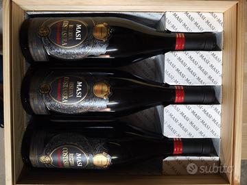 vendo confezione di vino (3 bottiglie) di Amarone classico del 2016 sempre conservato in cantina in posizione inclinata e completo di confezione originale in legno della cantina MASI, trattasi di vino per veri intenditori/collezionisti .
