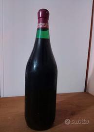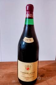 Bottiglia d'annata de celebre vino piemontese,Barbera D'Asti, prodotta dalla storica cantina Pietro Scrimaglio e figli di Nizza Monferrato.