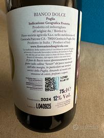 Famoso vino bianco dolce di Puglia , sapore inconfondibile, dal nome Fiore di Bacco , a 12% vol , perfetto in conservazione ed etichetta