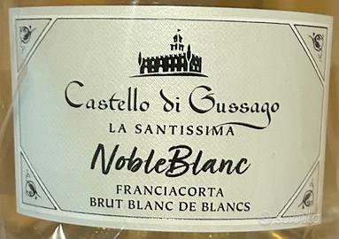 1 bottiglia di vino bianco. Castello di Gussago - La Santissima Nobile Blanc Franciacorta DOCG. Uvaggio:100% Affonamento: Minimo 18 mesi sui lieviti