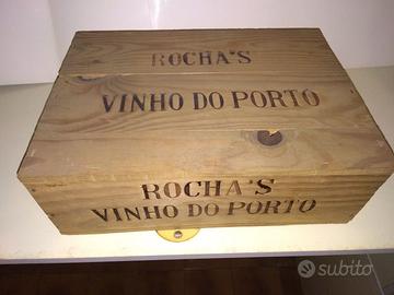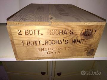 Vendesi cassa di Vino Porto pregiatissimo. La cassa in legno è perfettamente conservata come pure le tre bottiglie al suo interno. La confezione contiene 2 bottiglie di Vino Porto Rocha's Tawny ed 1 bottiglia di Vino Porto Rocha's White (vini pregiatissimi risalenti agli anni '70-'80, perfettamente sigillati). Trattativa riservata.