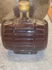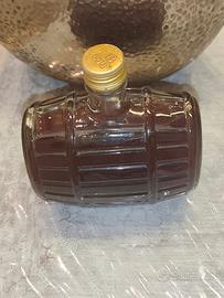 Rara bottiglia vintage di Vino Santo(Vino Liquoroso) della storica distilleria Fratelli Beccaro di Acqui Terme(fondata nel 1867). Il pezzo si distingue per la particolare lavorazione del vetro a forma di Botticella,tipica delle produzioni da regalo/collezione deglia anni '70 e per il tappo originale in metallologato. Sigillata,etichetta frontale integra con grafic d'epoca in ottimo stato. Ottimo pezzo da esposizione per amanti del vintage piemontese o collezionisti di bottiglie particolari.