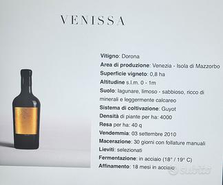 vino Dorona - Venissa - cassetta in legno originale - 6 bottiglie da 500ml numerate ognuna con incisione del numero sul vetro - etichetta in foglia d'oro zecchino - prima vendemmia "en primeur" 2010 - conservate nella mia cantina vino.