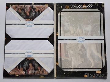 VINTAGE 1980-90 *LOTTO* CARTA DA LETTERE e BIGLIETTI ‘ARTE’ VERO VINTAGE! NO PRODUZIONE CONTEMPORANEA! NO MERCHANDISING DA MUSEI e da WEB! LOTTO *IN-DI-VI-SI-BI-LE* di *6* SET (4 CONFEZIONI + 12 BIGLIETTI). ♥ TUTTI i set sono: 1) NUOVI DA NEGOZIO, COMPLETI, SIGILLATI. 2) In CONDIZIONI ECCEZIONALI - con irrisori segni del tempo agli angoli 3) IMPOSSIBILI DA RITROVARE - ♥ ROSSO FIORENTINO 'ANGIOLINO MUSICANTE' 10 piccoli fogli o biglietti decorati e 10 buste decorate all’interno. FOLDER: 19 x 15 BIGLIETTO: 15 x 11 BUSTA: 17 x 12 MADE IN ITALY - FLORENCE © COPYRIGHT VOLUTAMENTE OSCURATO. Si tratta di una stamperia, comunque, NON PIÙ ESISTENTE. - ♥ BOTTICELLI La ‘PRIMAVERA’ carta da lettere 10 fogli decorati in colori tenui e 10 buste decorate all’interno. FOLDER: 24 x 17,5 FOGLIO: 22,5 x 16 BUSTA: 17 x 12 MADE IN ITALY - FLORENCE © COPYRIGHT VOLUTAMENTE OSCURATO. Stamperia NON PIÙ ESISTENTE. - ♥ KARTOS ‘FLORENTIA’ VINTAGE 1980 SPLENDIDO SET di CARTA DA LETTERE da collezione linea FLORENTIA, Vintage originale anni Ottanta by KARTOS, di cui potete trovare tantissime RIPRODUZIONI nei negozi KARTOS, ma NESSUNA AUTENTICO VINTAGE ANNI ‘80 come questo (senza codice a barre, siti ecc.) SIGILLATA, dovrebbe contenere: _ 10 FOGLI _ 10 BUSTE CARTELLINA: 23 x 16,5 FOGLIO: 17 x 13 BUSTA: 14 x 9 - ♥ RUBENS ‘Il Giardino d’amore’ 12 fogli decorati in colori TENUI e 6 buste decorate. MAI COMMERCIALIZZATO IN ITALIA. FOLDER: 19,5 x 18,5 FOGLIO: 17 x 17 BUSTA: 14,5 x 8 - ♥ VINTAGE ‘80 6 BIGLIETTI RASO 6 BIGLIETTI D’AUGURI in CARTONCINO con celebri RIPRODUZIONI di dipinti d’autore in STAMPA SU RASO! Con busta. 16,5 x 11,5 cm. © BEATRICE d’ESTE EDIZIONI – PRINTED IN ITALY - ♥ VINTAGE ‘80 6 BIGLIETTI ITALY MENGA 6 BIGLIETTI D’AUGURI (uno solo doppio), in CARTONCINO LEGGERO con celebri RIPRODUZIONI di dipinti d’autore a tema CRISTIANO. 17 x 11,5 cm. © MENGA EDITORE MILANO – IMPRIMÉ EN ITALIE – PRINTED IN ITALY - Spedizione solo con POSTE DELIVERY STANDARD.