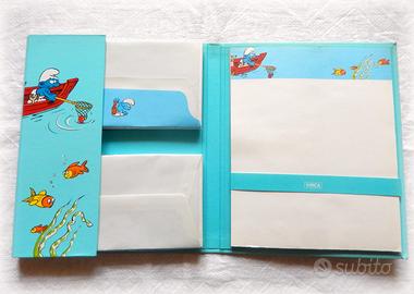 * Rispondo solo ad utenti ISCRITTI a Subito, con PIU' ANNUNCI ATTIVI.* PUFFI Vintage 1982 3 SET carta da lettere NUOVI * LOTTO NON SPAIABILE: si vende solo come da FOTO PRINCIPALE * NO 'CARTOLERIA' CONTEMPORANEA! NO VINTAGE USATO! QUESTI oggetti non hanno NULLA a che vedere con merchandising dei PUFFI riedito ATTUALMENTE, disponibile in migliaia di pezzi, tutti uguali e DI NESSUN VALORE. Qui si parla di oggetti dei Puffi NUOVI ma AUTENTICO VINTAGE PRIMI ANNI '80 by PEYO-SEPP a THE NETHERLANDS e MADE IN ITALY. 3 NUOVE, STUPENDE E RARE CARTELLINE RIGIDE con carta da lettere dei PUFFI, contenente ciascuna 20 fogli DECORATI e 20 buste, per un totale di 60 (!) fogli e 60 (!) buste. I SET sono dello stesso identico FORMATO, FATTURA e CONTENUTO. Nel 1' folder, la copertina riproduce un PUFFO con una ZAPPA nel villaggio dei Puffi. Nel 2' folder, la copertina ritrae un PUFFO su una BARCA che PESCA UN PESCE. Nel 3' folder, la cover ritrae un PUFFO CHE GIOCA A PALLONE in un prato. I fogli riproducono lo stesso disegno della cartellina e le buste sono decorate INTERNAMENTE. La CARTELLINA è IN CARTONE RIGIDO, lucida esternamente e foderata. Aletta interna DECORATA. DIMENSIONI CARTELLINA chiusa: 22,5 x 19 x 1,5 cm. FOGLIO: 21 x 17 cm. BUSTA: 9 x 18 cm. PESO 1 SET: 310 gr. - CONDIZIONI OTTIME. NUOVI DA NEGOZIO, COMPLETI E PERFETTAMENTE PULITI. NUOVI DA NEGOZIO, come tutto il mio materiale. *NON TRATTO e NON HO MAI TRATTATO USATO.* CONDIZIONI DELLE CARTELLINE: OTTIME. MINIMI SEGNI DEL TEMPO. CONDIZIONI DI FOGLI E BUSTE: PERFETTE. Segni del tempo sul PRIMO FOGLIO in tutti i set. Per eccesso di onestà, evidenzio che nel set 'pesca' e nel set 'zappa', il blocco dei fogli si è STACCATO dal cartoncino. TRE preziose aggiunte per i collezionisti dei Puffi SOLO AUTENTICO VINTAGE e NON REPLICHE o IMITAZIONI! © 1982 PEYO - SEPP - KORTEKAAS Merchandising bv the NETHERLANDS © VIRCA - MADE IN ITALY. - SPEDIZIONE: POSTE DELIVERY STANDARD.