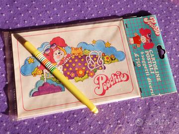 * RISPONDO SOLO ad utenti Verificati e con PIU' ANNUNCI ATTIVI.* - Piccolo lottino composto da QUADERNO AD ANELLI MOON DREAMERS™ BLISTER SIGILLATO con 6 CARTOLINE di POOCHIE™ + PENNA JOLLINA. Essendo materiale di 35/40 ANNI FA, sta al Vostro BUONSENSO capire che sono oggetti DA COLLEZIONARE, dei quali NON si conosce lo stato interno (blister) ma di cui si può CERTAMENTE ESCLUDERE un FUNZIONAMENTO COMPLETO da parte della PENNA: basta davvero un briciolo di intelligenza! Inseriti nella categoria ‘COLLEZIONISMO’, vengono venduti come oggetti DA COLLEZIONE e NON DA UTILIZZARE. --- MOON DREAMERS™ QUADERNO AD ANELLI anno 1987. Serie televisiva animata americana trasmessa nel 1986 insieme ai MINI PONY per promuovere i giocattoli del marchio Hasbro. IMMAGINI meravigliose e COLORI splendidi. DECORATO ANCHE IL RETRO. L’INTERNO è FODERATO in carta color crema, tanto DELICATA quanto MIRACOLOSAMENTE PRESERVATA. Formato: Per fogli A5 (22 x 16,5 cm.) CAPIENZA: MEDIA. © 1987 HASBRO inc. – ERMELLINLINE --- JOLLINA: PENNA BIRO IN PLASTICA COLORATA, ‘decorata’ con PICCOLI ANELLINI o cerchietti colorati, che ne fanno la principale caratteristica, insieme al SUO INCONFONDIBILE PROFUMO. La penna è stata testata ed è FUNZIONANTE A TRATTI. SCRIVE MEGLIO (ma non perfettamente) SU FOGLI SPESSI E LUCIDI, tipo RIVISTE o DEPLIANT, MALE SU FOGLI NORMALI: in questi SI INCEPPA CONTINUAMENTE: Non riuscite a scrivere più di qualche parola. OGGETTO DA COLLEZIONE degli anni 80; venduto così come è, con totale esclusione di ogni forma di funzionamento. -- POOCHIE™: Il blister contiene 6 CARTOLINE con 6 DIVERSI SOGGETTI. Realisticamente 1983. CARTOLINA: 15 x 10,5cm. © POOCHIE™ -- CONDIZIONI DI TUTTI GLI OGGETTI OGGETTI NUOVI DA NEGOZIO, COMPLETI e PERFETTAMENTE PULITI. *NON TRATTO E NON HO MAI TRATTATO USATO* Il raccoglitore NON ha macchie di umidità!! Solo QUALCHE IRRISORIO GRAFFIETTO. Spedizione solo con POSTE DELIVERY STANDARD.