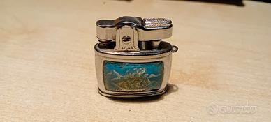 accendino a benzina vintage Atlas(o Atlas-Lite). Questi accendini da tasca e per signore furono molto popolari negli anni '50 e '60, spesso presentati con decorazioni in smalto colorato o come articoli pubblicitari.