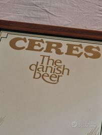 VINTAGE anni 80 Specchio pubblicitario con marchio Birra Ceres Serigrafato con cornice in legno risalente agli anni 80 Dimensioni cm 39 x 54